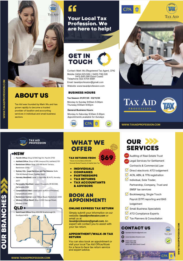- Sydney City – Legal Services and Tax Returns: Suite 704 / 46 Market Street, Sydney.